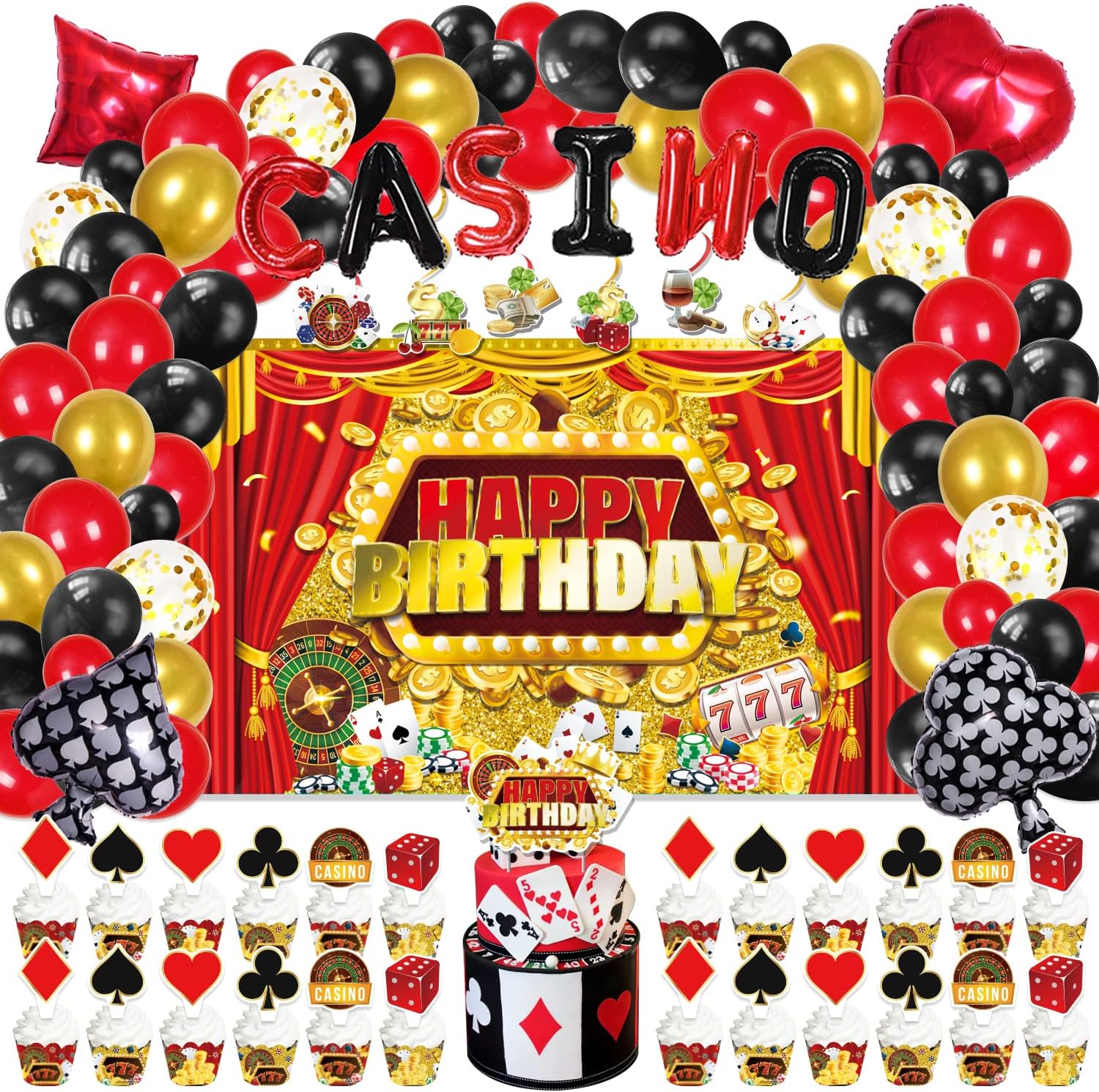 Amazon com: LXlucktim Casino Theme Birthday Party Decorations 144 Pcs