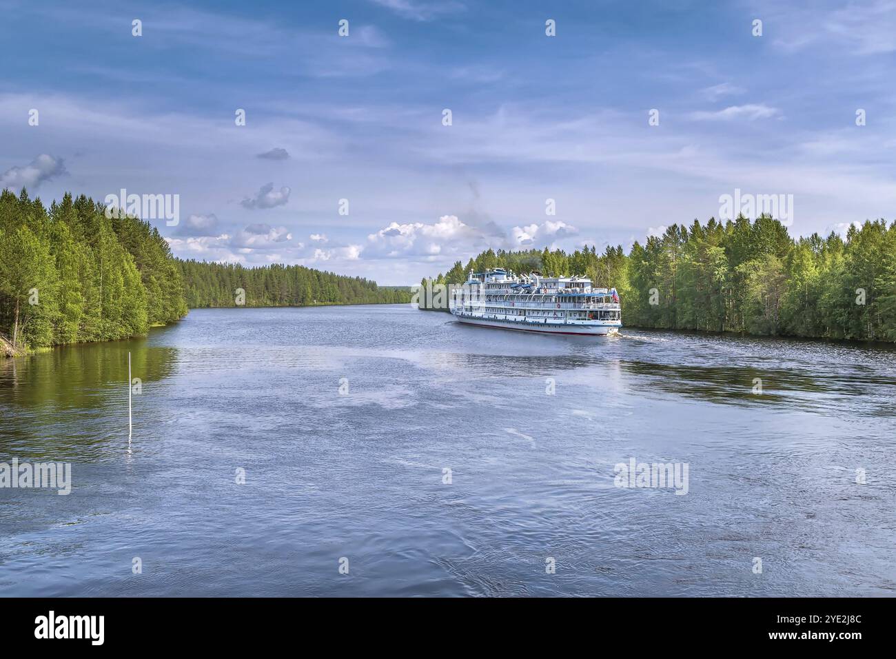Cruise ship on Vyg river (part of the White Sea Baltic Canal) Russia