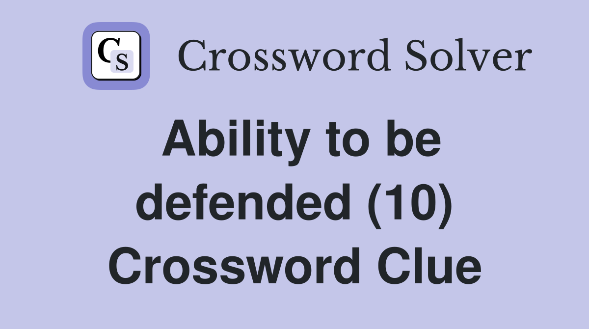 Ability to be defended (10) Crossword Clue Answers Crossword Solver