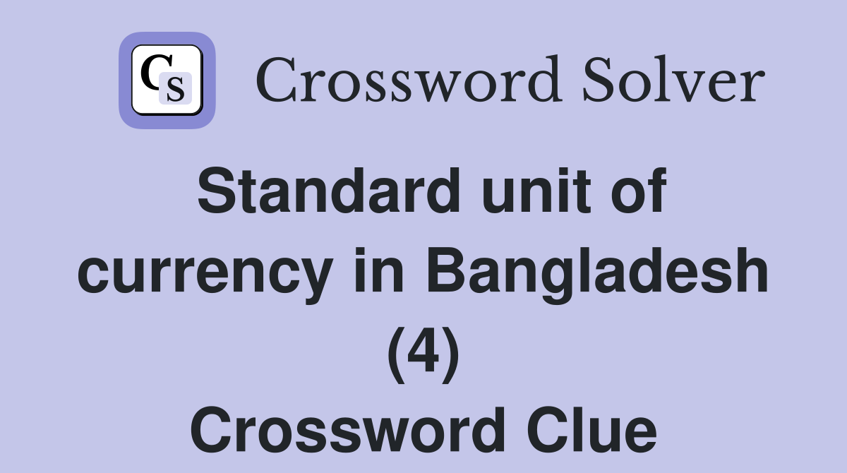 Standard unit of currency in Bangladesh (4) Crossword Clue Answers