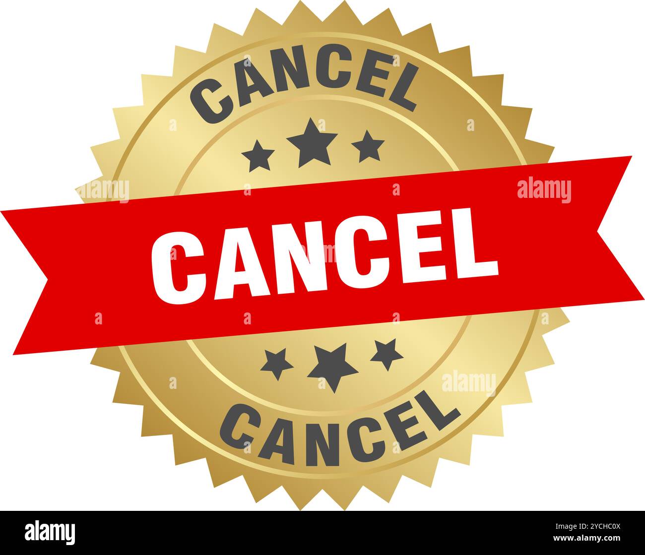cancel round red and gold label isolated on transparent background