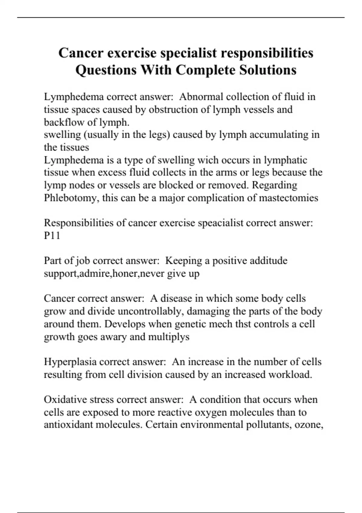 Cancer exercise specialist responsibilities Questions With Complete
