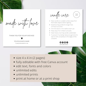 Ready to print candle care card canva template edit candle care