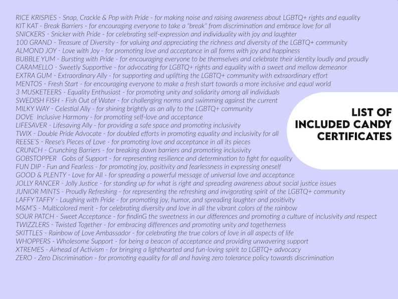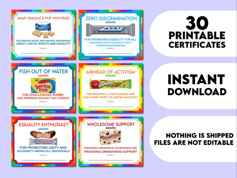 30 Pride Candy Bar Award Certificates Coworker Candy Bar Pride Etsy
