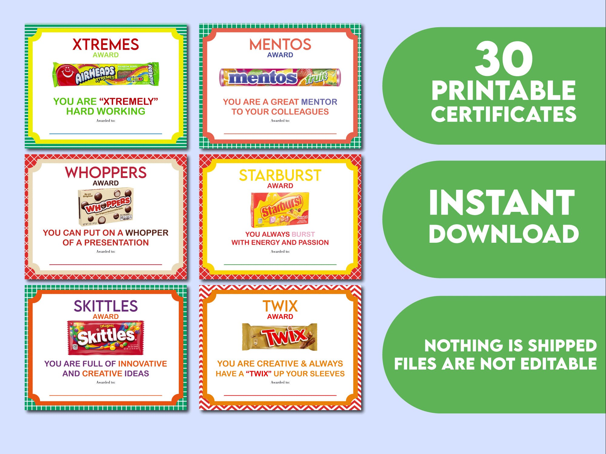 50 Candy Bar Award Certificates: Printable Team Awards (PDF) Etsy