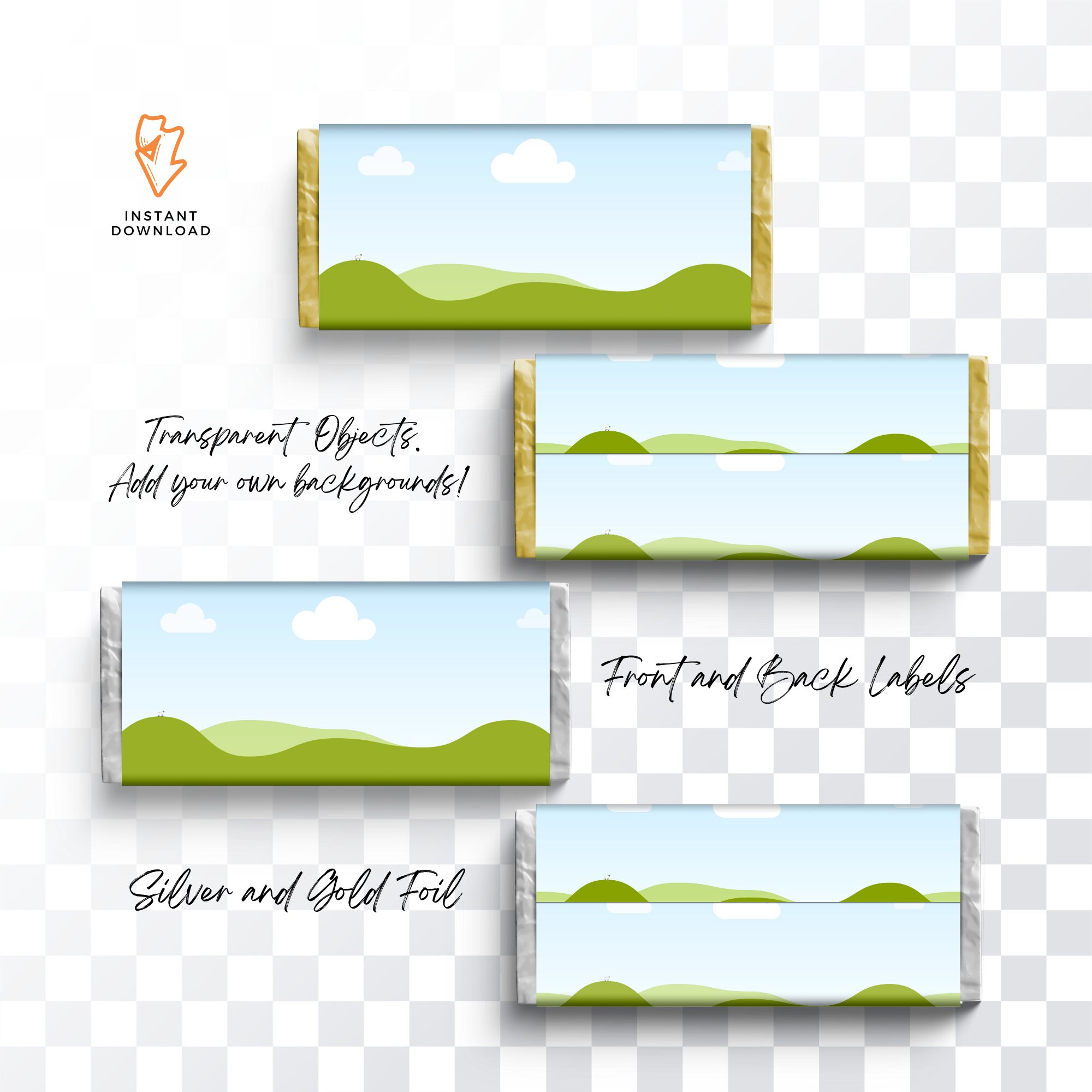 Chocolate bar blank candy bar wrapper template mockup instant download