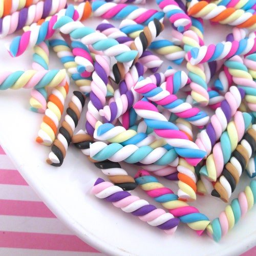 10 Assorted Polymer Clay Candy Twist Canes Cute Fake Sweets Etsy