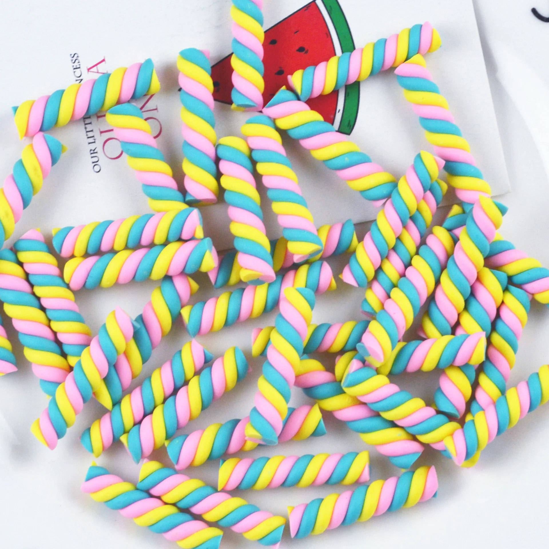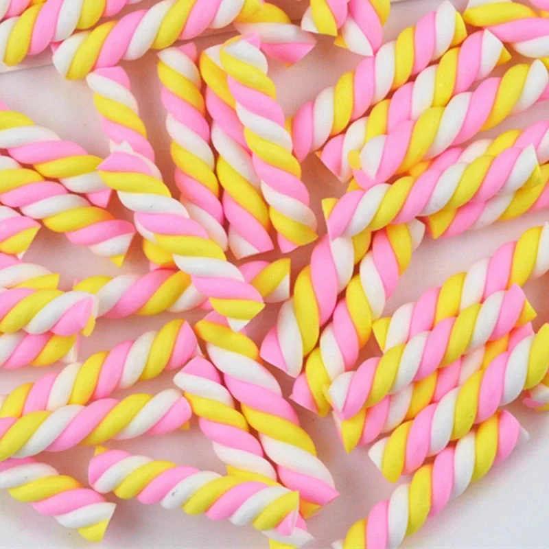Wholesale Polymer Clay Candy Marshmallow Twists Striped Pastel Color