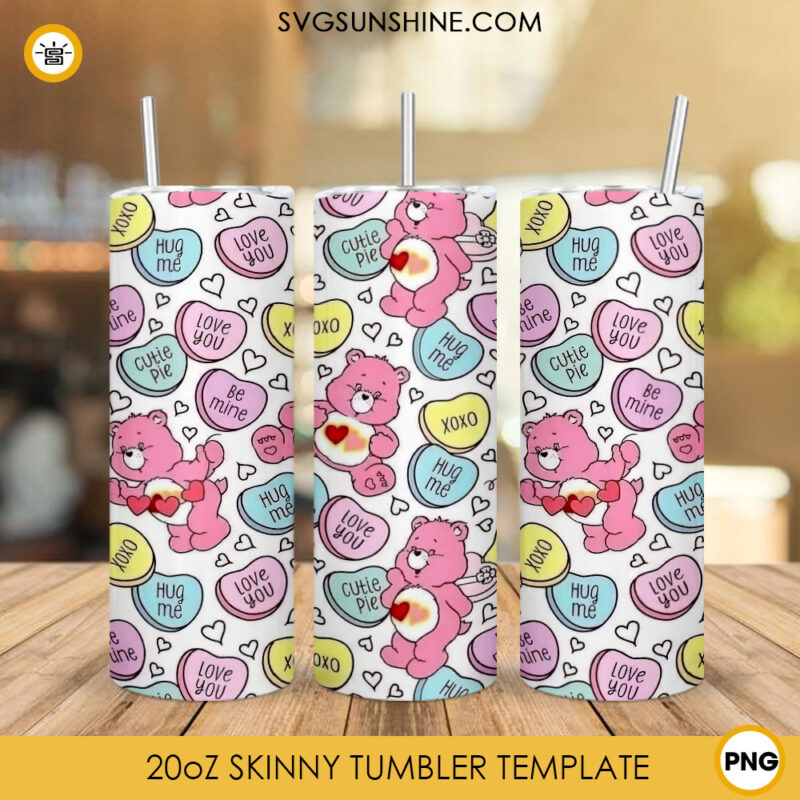 Care Bears Valentine 20oz Skinny Tumbler Design Candy Hearts Tumbler