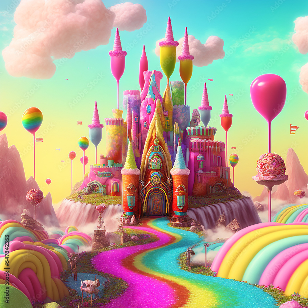Candy land fantasy landscape ilustración de Stock Adobe Stock
