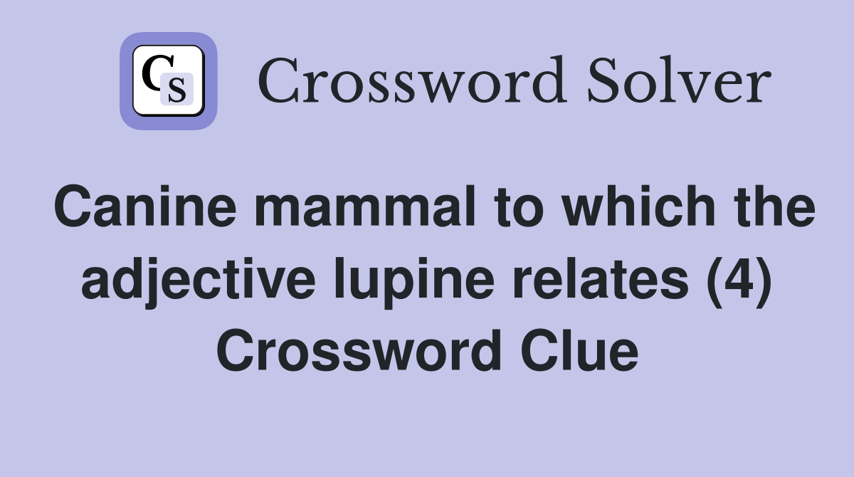 Canine mammal to which the adjective lupine relates (4) Crossword