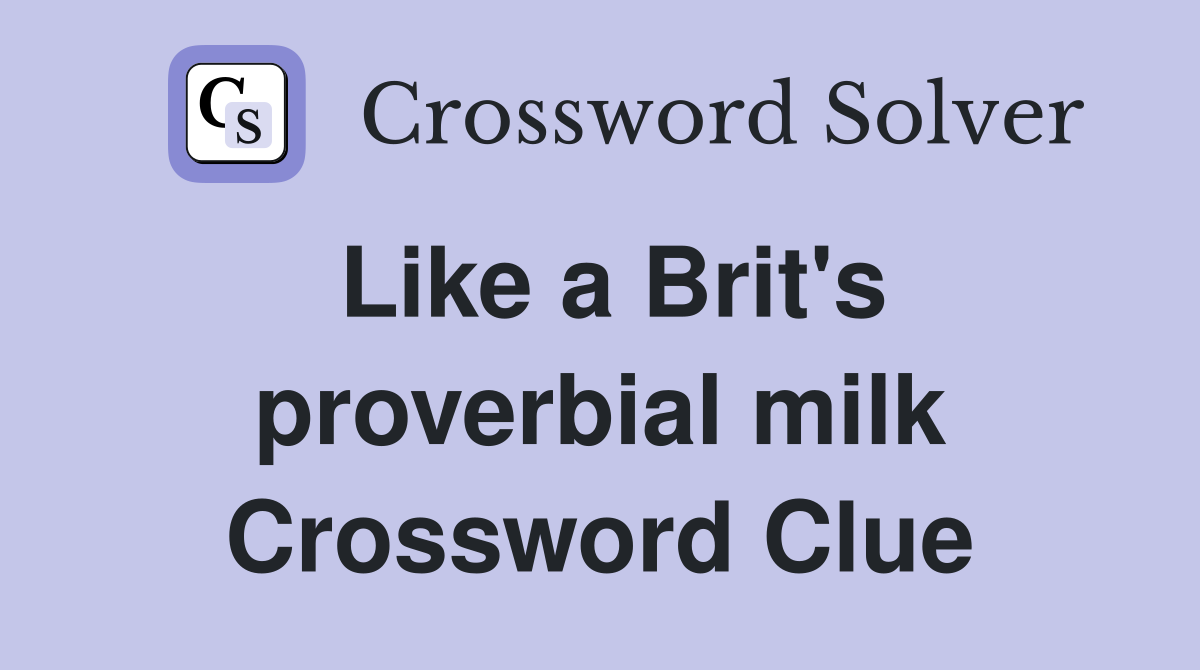 Like a Brit s proverbial milk Crossword Clue Answers Crossword Solver