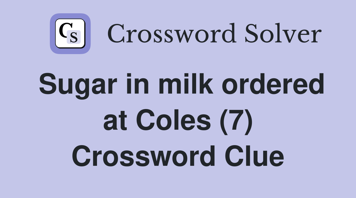 Sugar in milk ordered at Coles (7) Crossword Clue Answers Crossword