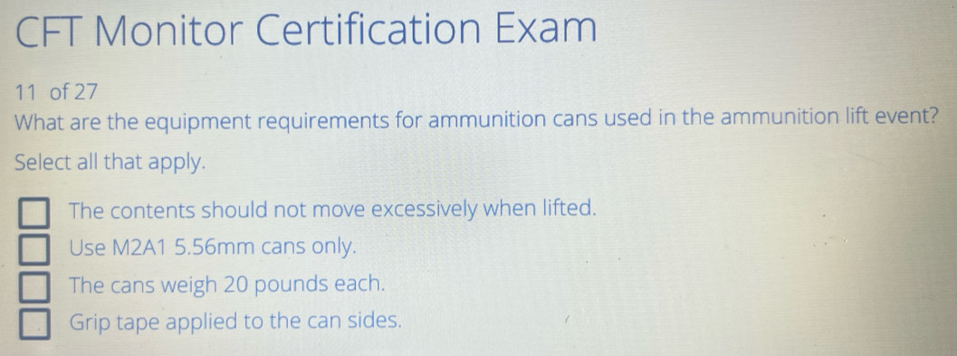 Solved: CFT Monitor Certification Exam 11 of 27 What are the equipment