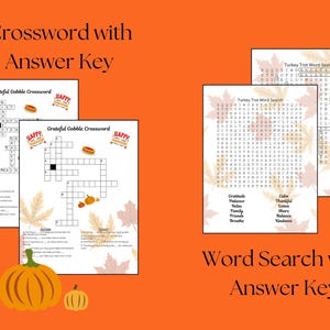 Thanksgiving Crossword Puzzle and Word Search for Turkey Trot by
