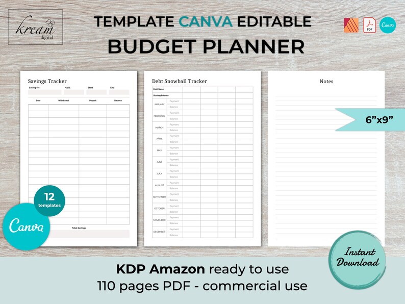CANVA Budget Planner KDP Template 69 Inches 110 Pages Etsy