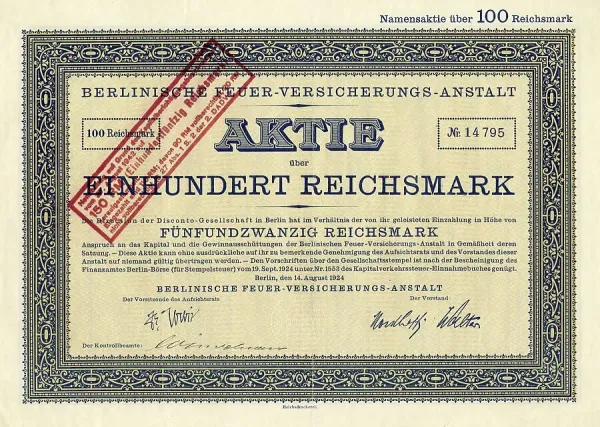 Historic stock certificate 300 reichsmarks Our beautiful Wall Art and