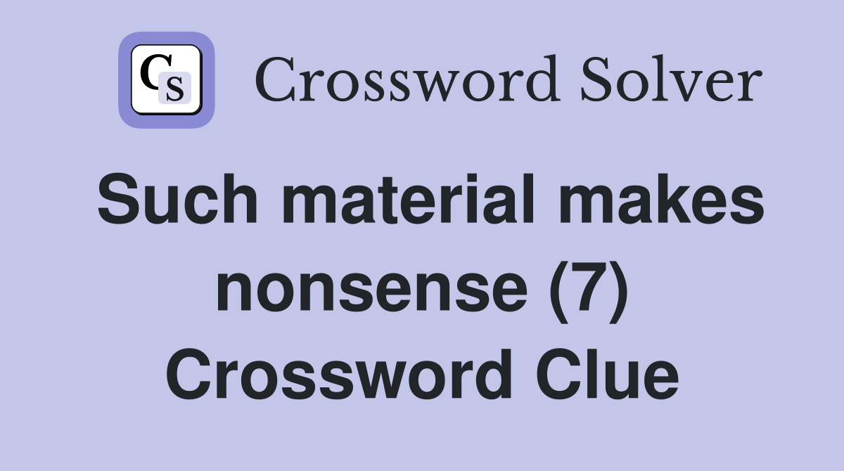 Such material makes nonsense (7) Crossword Clue Answers Crossword