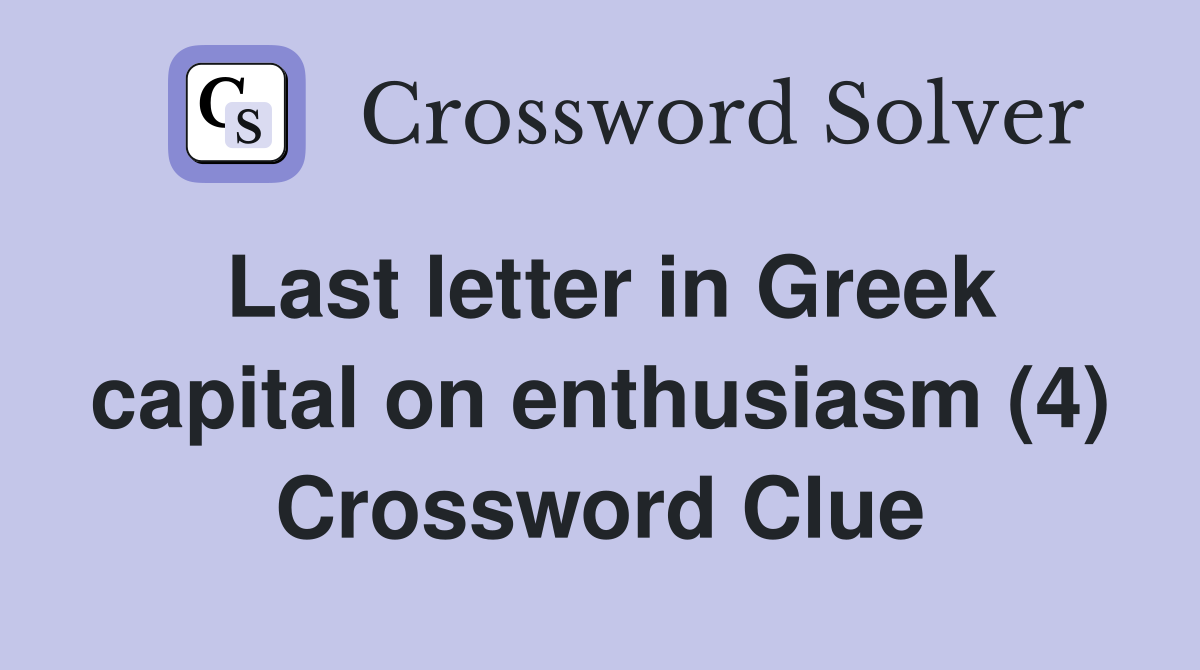 Last letter in Greek capital on enthusiasm (4) Crossword Clue Answers