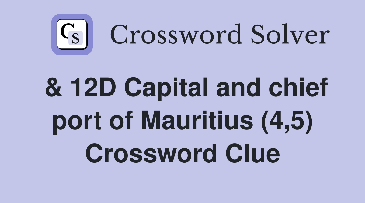 12D Capital and chief port of Mauritius (4 5) Crossword Clue
