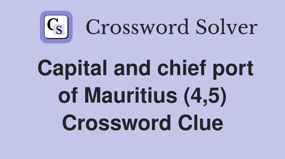 Here are some of the images for Capital Of Mauritius Crossword Clue that we found in our website database.