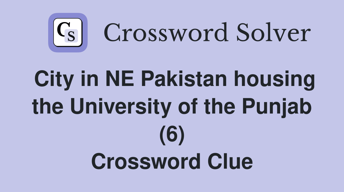Pakistani city in the Punjab (6) Crossword Clue Answers Crossword