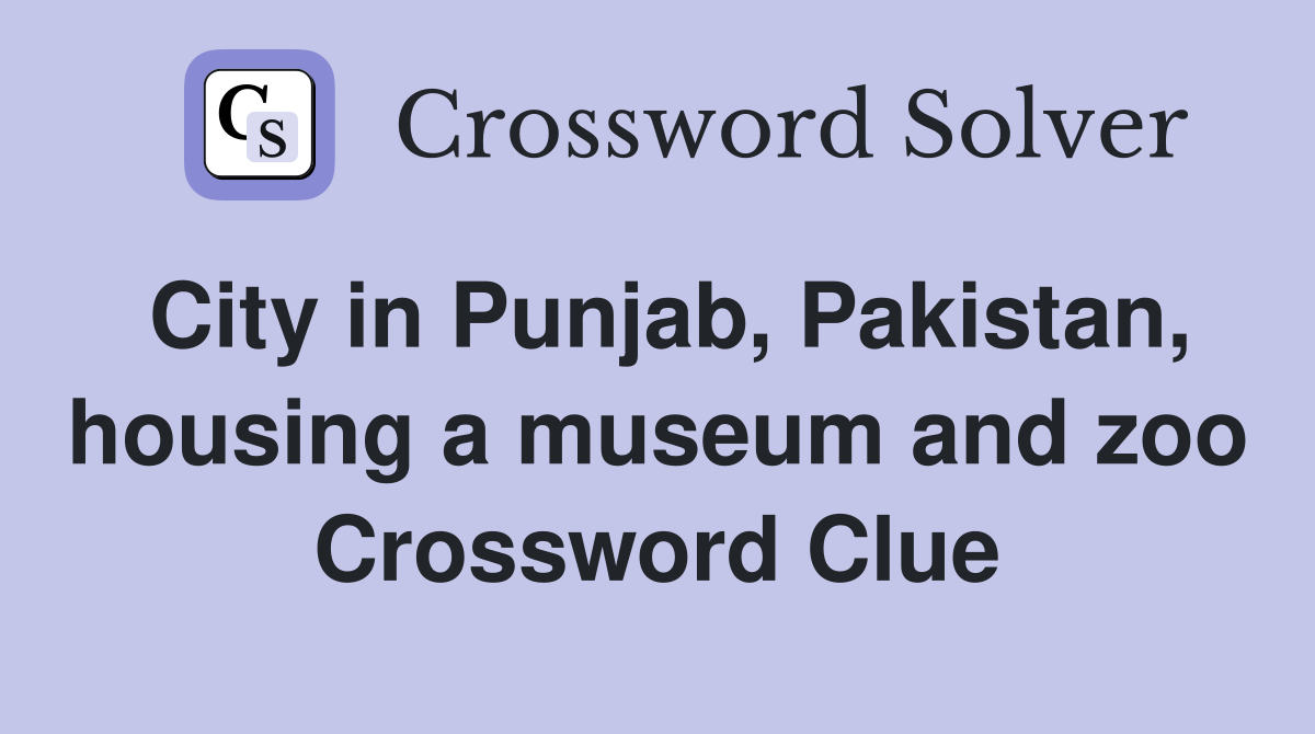 City in Punjab Pakistan housing a museum and zoo Crossword Clue