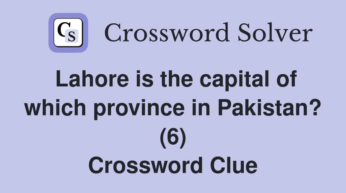 Lahore is the capital of which province in Pakistan? (6) Crossword