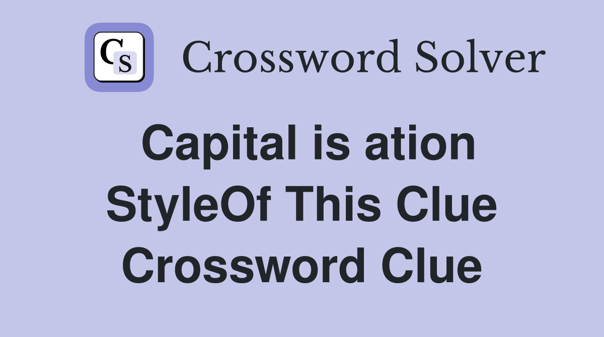 Capital is ation StyleOf This Clue Crossword Clue Answers Crossword
