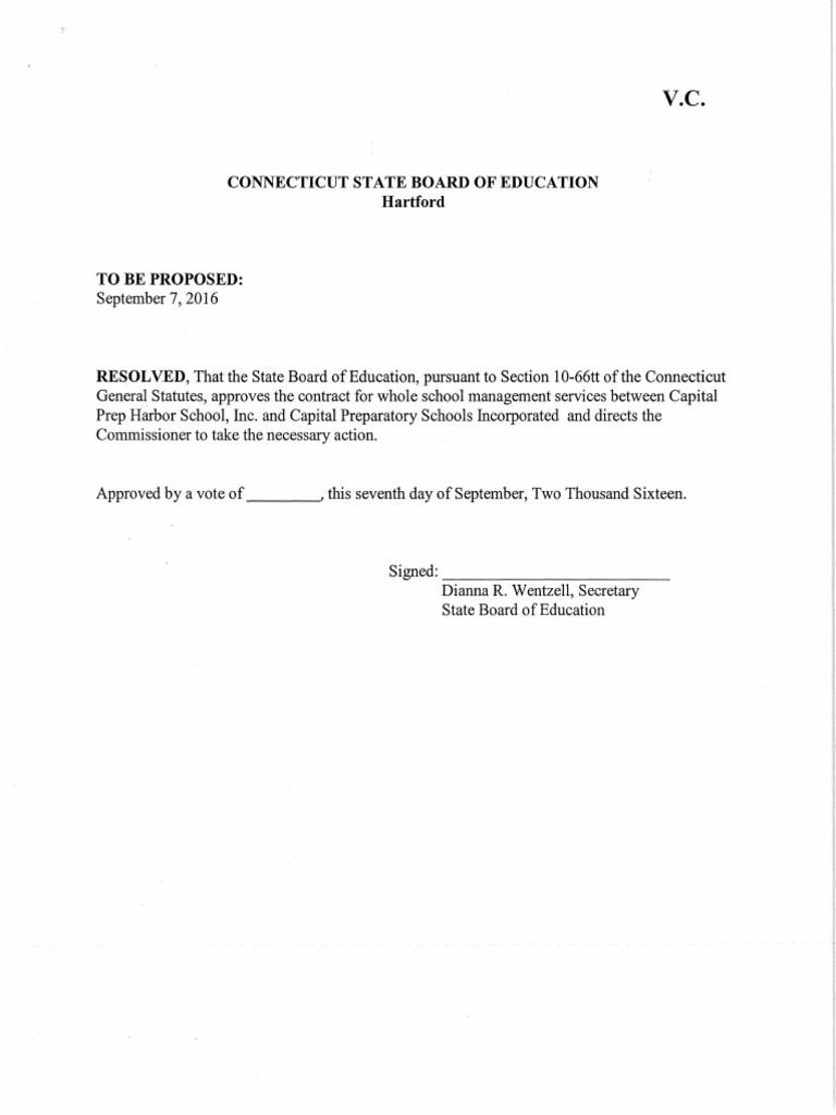 Approval of Whole School Management Services Contract Between Capital