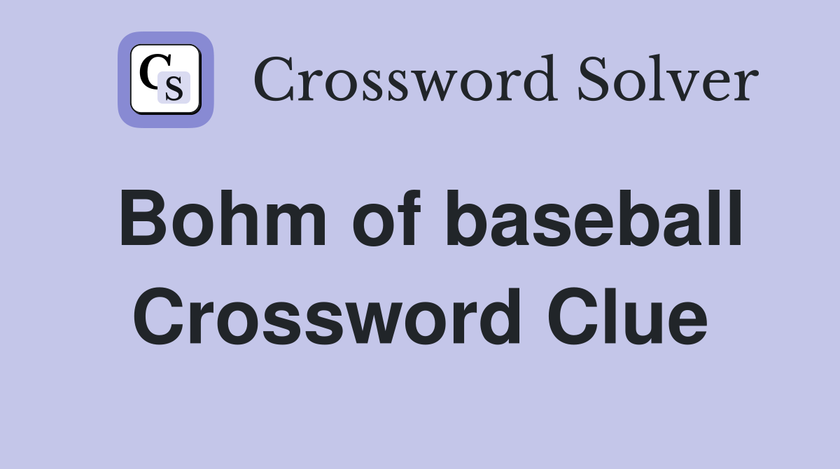 Bohm of baseball Crossword Clue Answers Crossword Solver