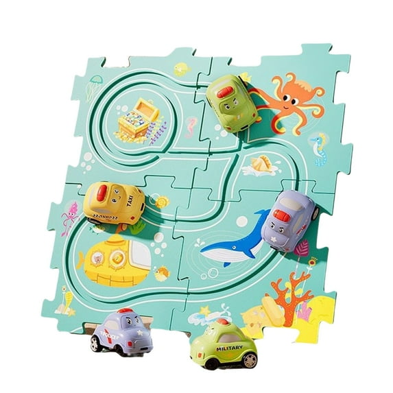 Blue Children Puzzle Track Car Set Diy Sliding Toy Educational Logical