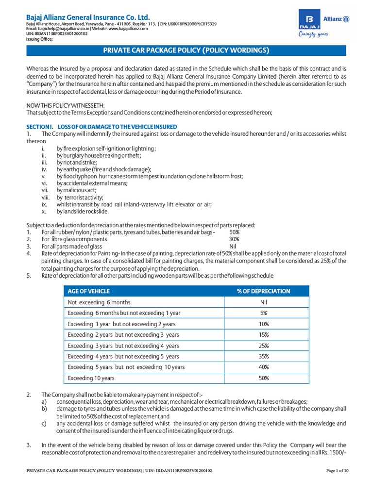 Car Policy Wording Download Free PDF Indemnity Insurance