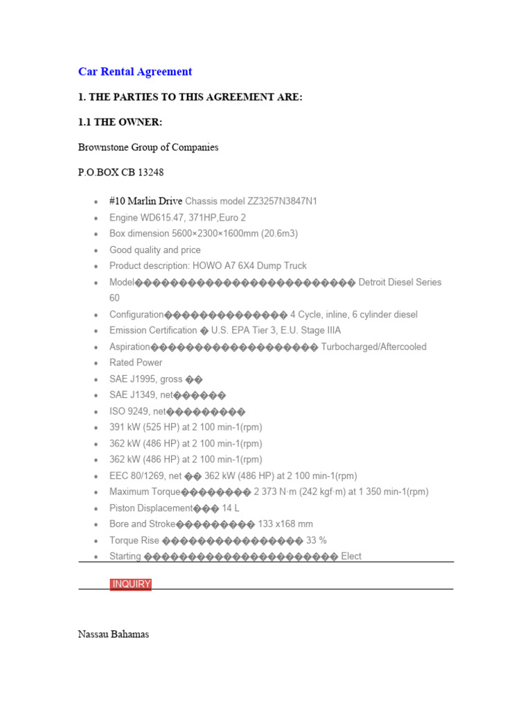 Editable Car Rental Agreement Template Car Rental Contract Printable