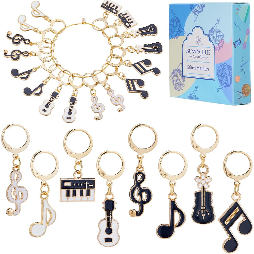 SUNNYCLUE 1 Box 16Pcs Crochet Markers Cute Metal Marker Charms Music