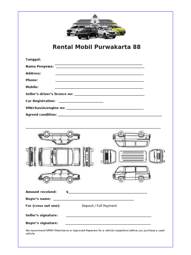 Private Vehicle (Car) Sale Receipt Template WordLayouts