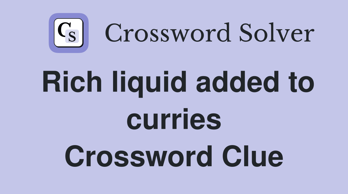 Rich liquid added to curries Crossword Clue Answers Crossword Solver