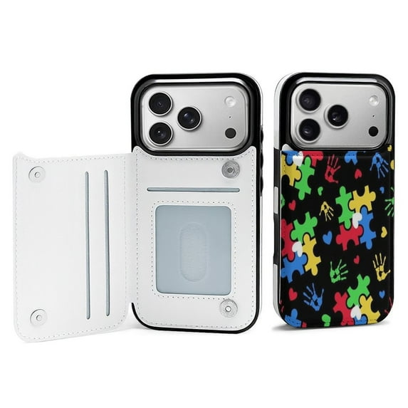 Autism Theme PUZZLE Heart Pattern Leather Wallet Case for iPhone 17 Air