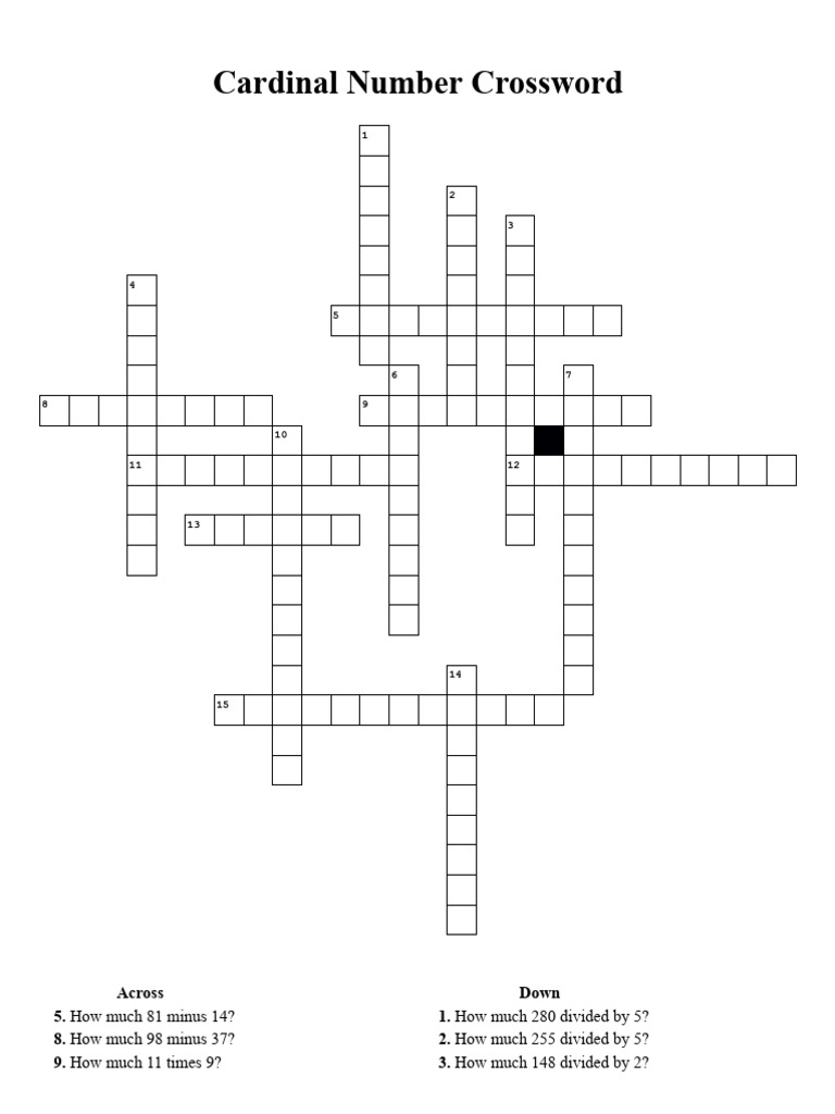 Cardinal Numbers Crossword Puzzle Crossword Labs