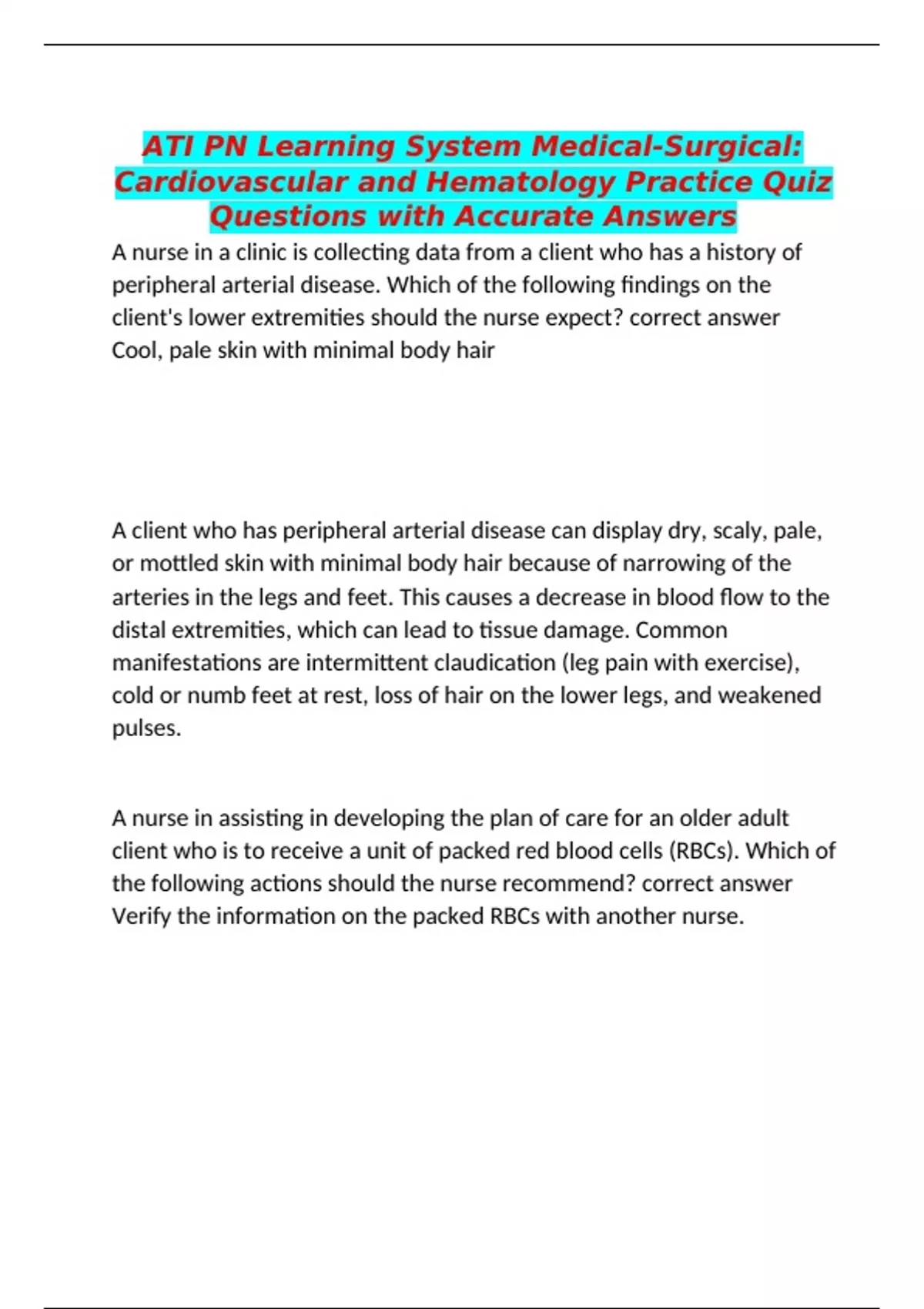ATI PN Learning System Medical Surgical: Cardiovascular and Hematology
