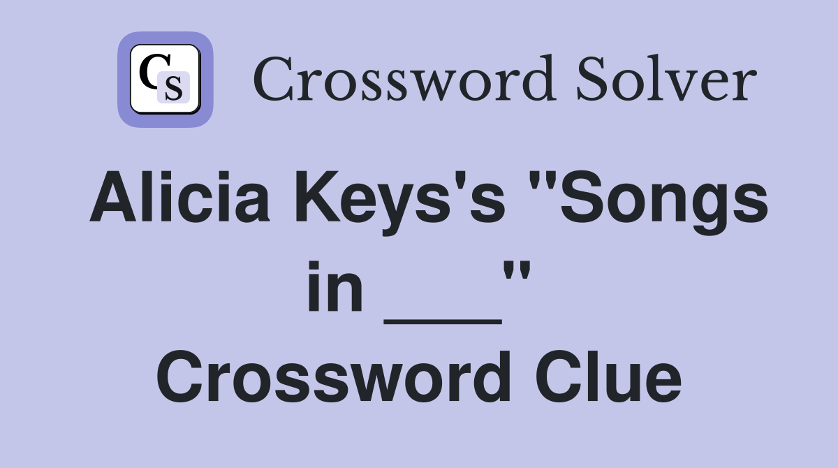 Alicia Keys #39 s quot Songs in quot Crossword Clue Answers Crossword Solver