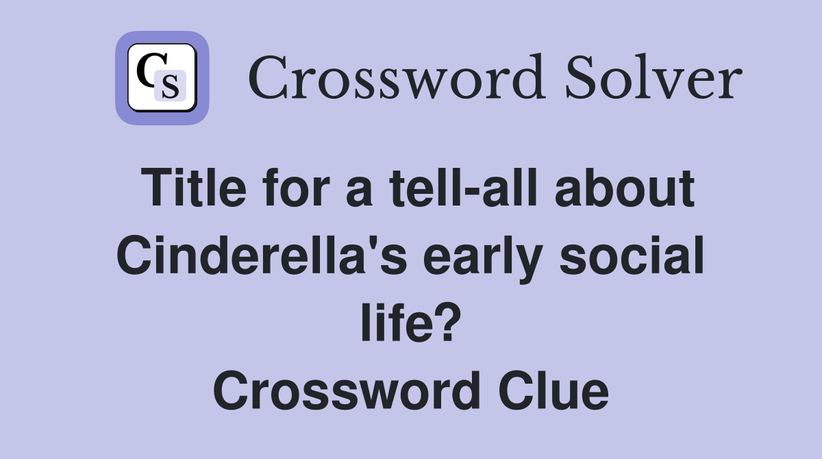 Title for a tell all about Cinderella #39 s early social life? Crossword