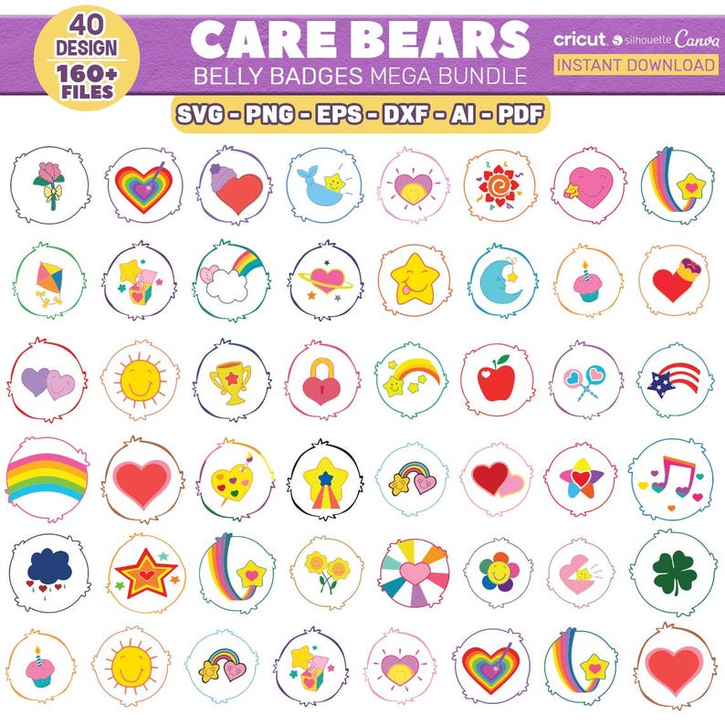 40 Care Bears Belly Badges Digital Files Design Files Cricut SVG