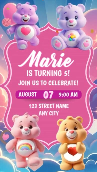 Editable Care Bears Birthday Invitation Video Template PosterMyWall