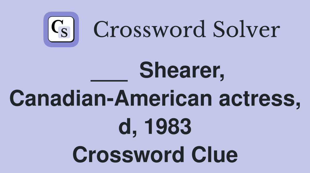 Shearer Canadian American actress d 1983 Crossword Clue Answers