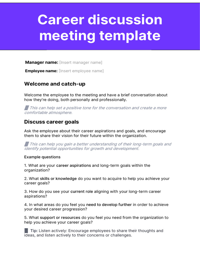 ? Career discussion template Zavvy Template PDF Goal Mentorship