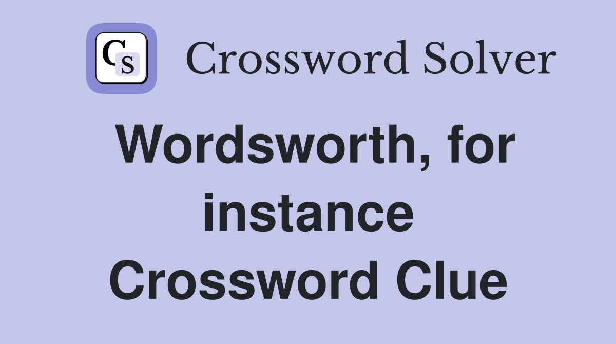 Wordsworth for instance Crossword Clue Answers Crossword Solver
