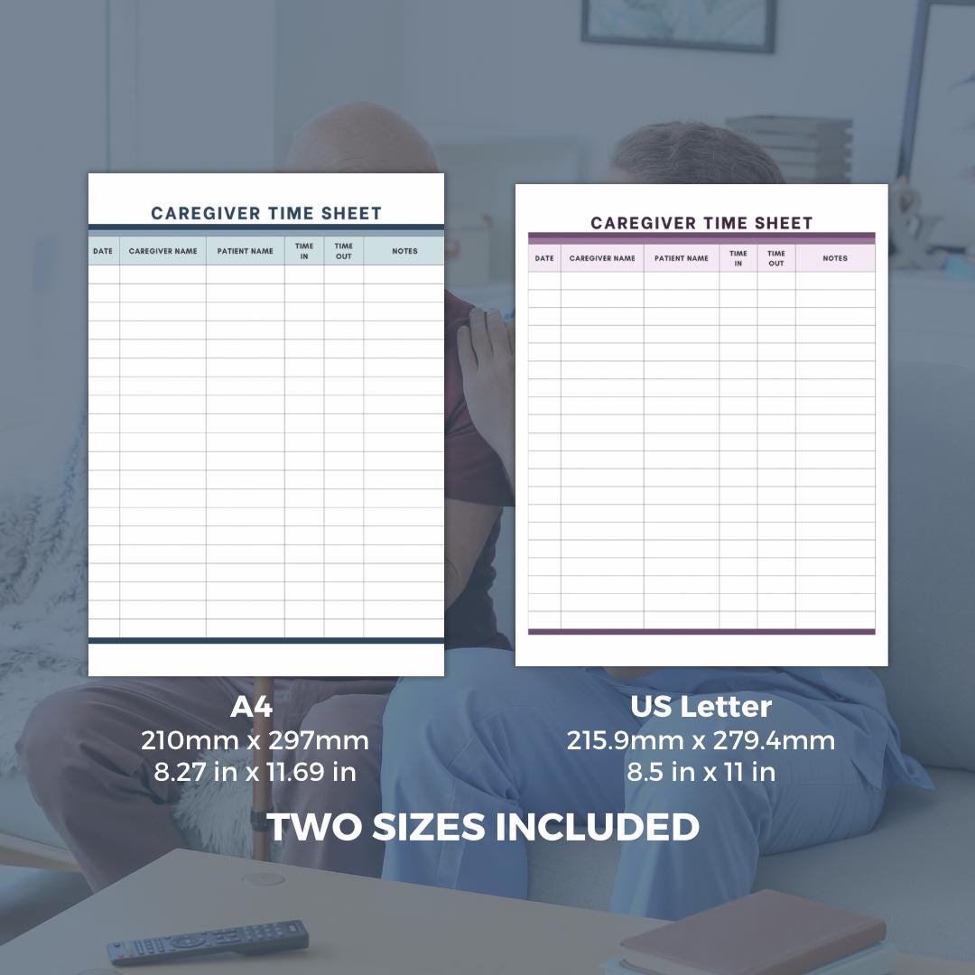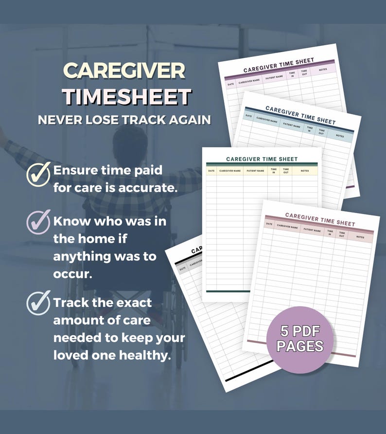 Printable Caregiver Timesheet Home Health Care Time Sheet Etsy Australia