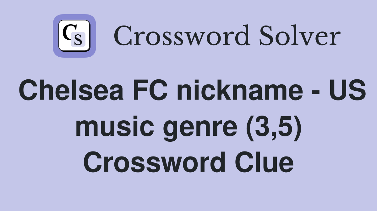 Chelsea FC nickname US music genre (3 5) Crossword Clue Answers