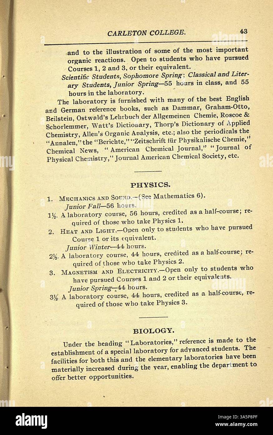 Carleton College s 1887 1888 catalog lists courses alumni students
